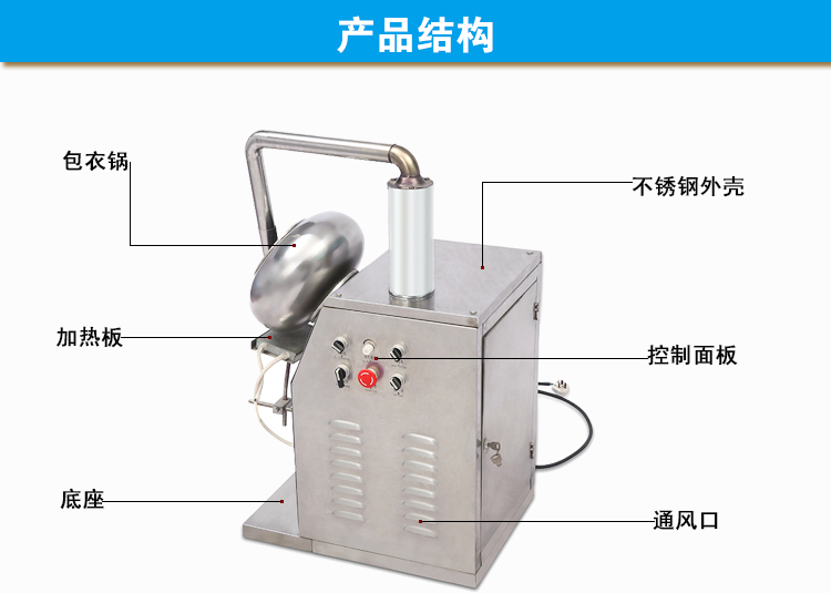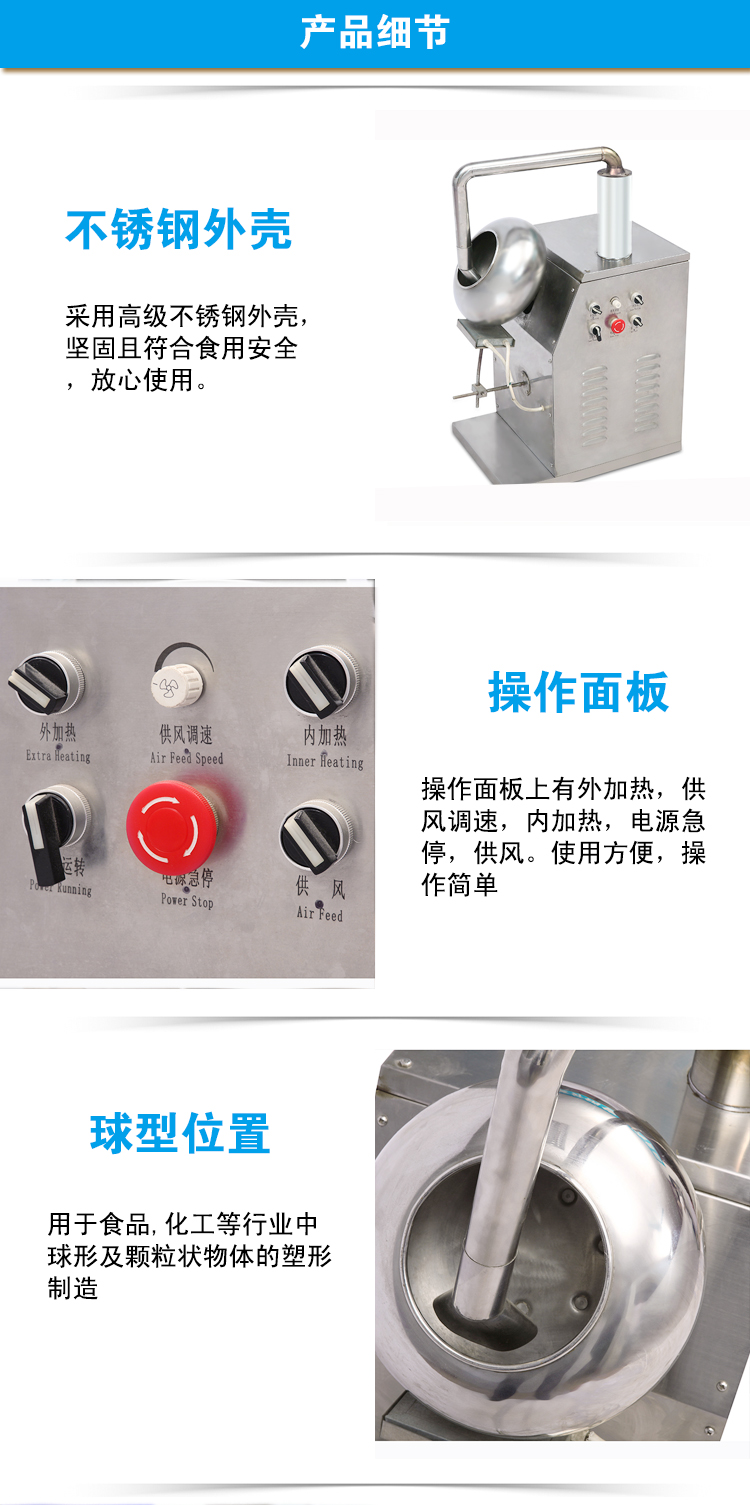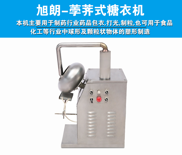本机主要用于制药行业药品包衣,打光,制粒,也可用于食品,化工等行业中球形及颗粒状物体的塑形制造。