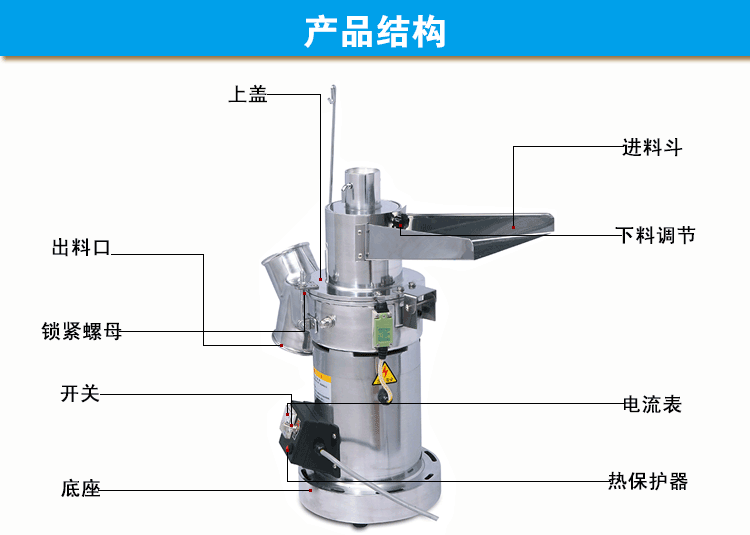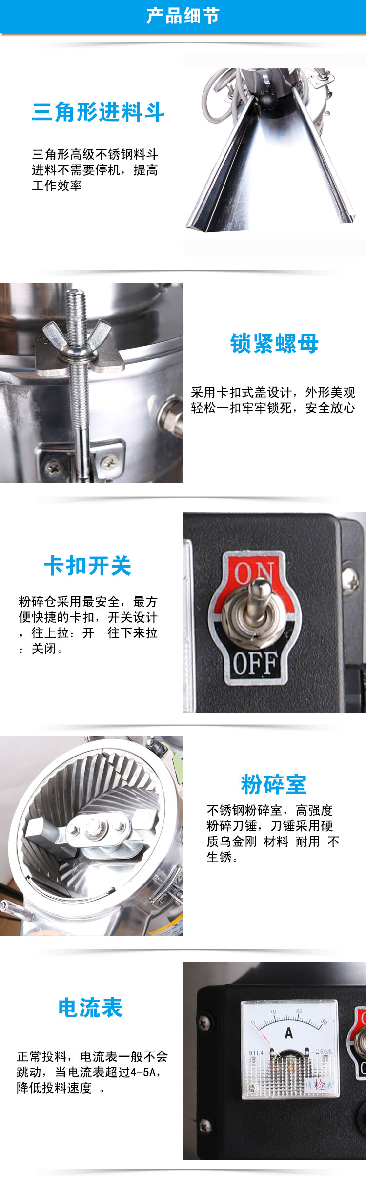 分用不锈钢制作,符合卫生标准,除制细粉外,还可制煎汤剂用的粗颗粒饮片(用粗颗粒饮片煎煮汤药,可