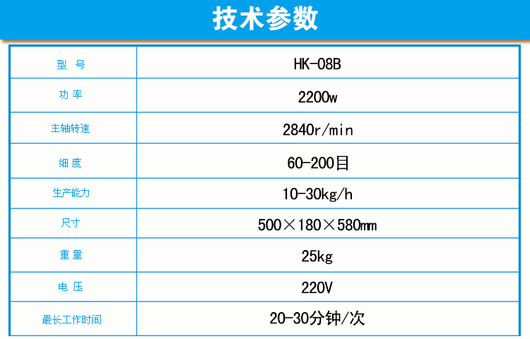 警告:本机属实验型粉碎机,不适合长时间工作,不能作为工业粉碎机长时间连续工作生产,每分钟投放物