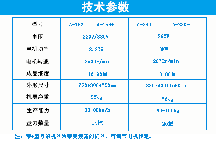 物料可以粉碎到较细,有些只能打成粗粒状。含水量特别大/含油量特别高/含糖量特别高的物料,本机无法保证加工后
