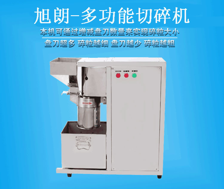 3、多功能切碎机采用高速钢刀片的形式对物料进行高速切碎,因接触面小而速度快,从而达到不出油的效果。