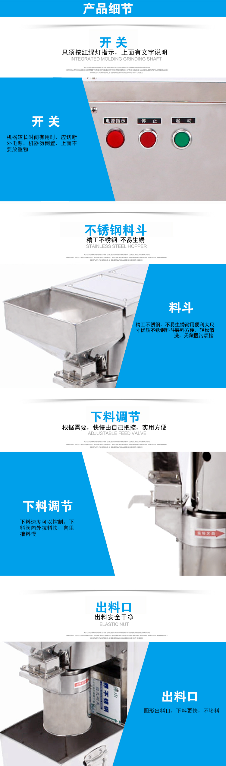 4、干些物料,要求炒干、炒熟后,再用本机加工,效果更好,切碎得更细,产量也更高。